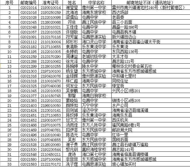 2021年*av女优 邮寄通知书地址不详的学生名单